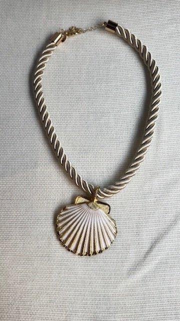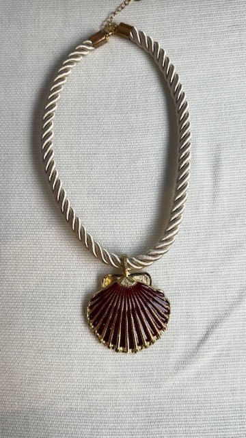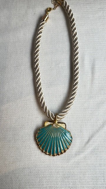 Collar con cordón de algodón y concha esmaltada. Disponibles en tres colores
