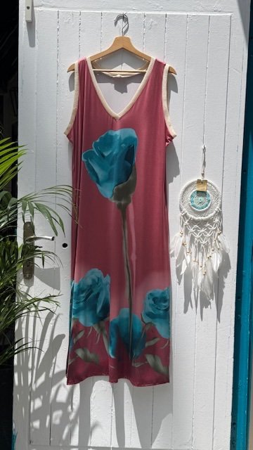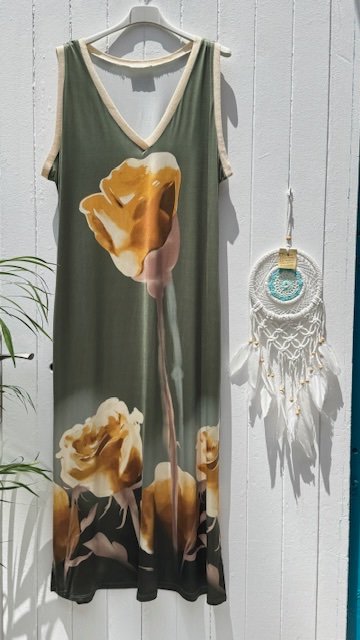 Vestidos largos con cuello de pico y bolsillos en punto de seda. Tallan más grande